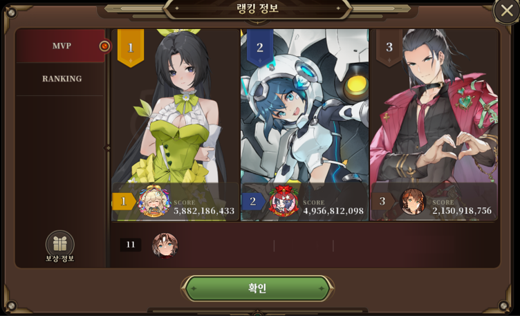 └ MVP는 1위 ~ 3위 모험가님의 리더 캐릭터 모습이 적용됩니다.