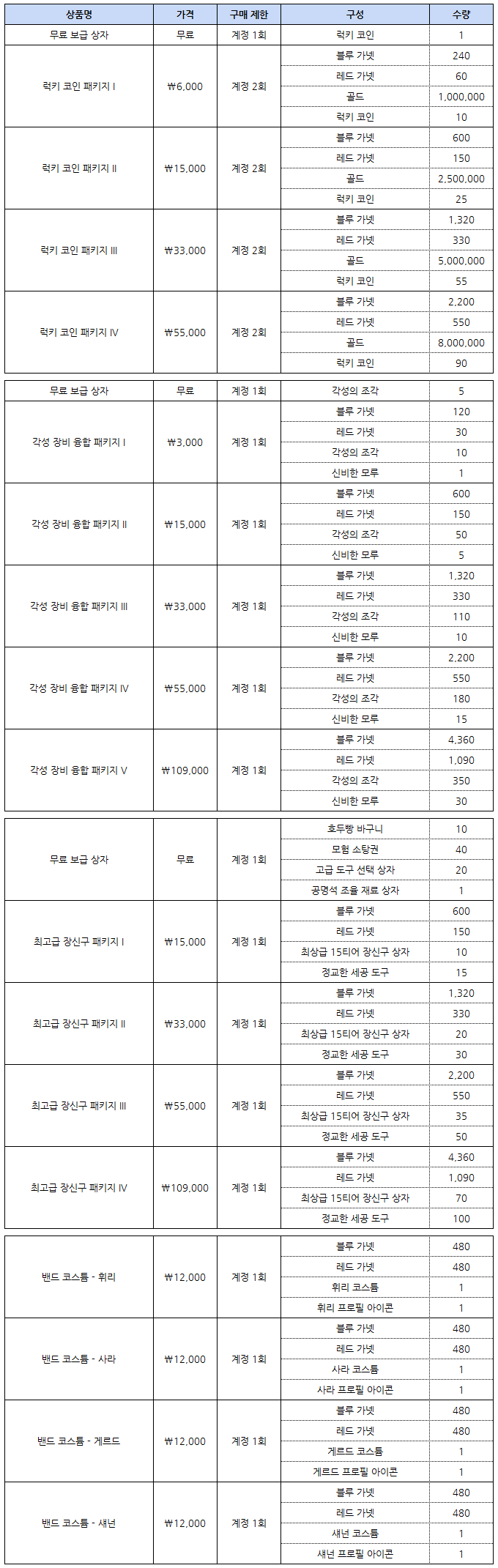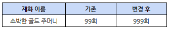 - 소박한 골드 주머니의 최대 사용 횟수가 99회에서 999회로 변경됩니다.