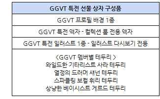└ GGVT 걸밴드 코스튬 4종 획득 시 <GGVT 특전 선물 상자>를 획득할 수 있습니다.