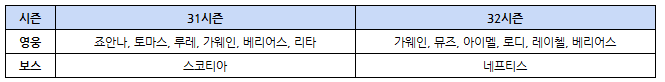 └ 새로운 시즌에 따라 다음과 같이 변경됩니다.